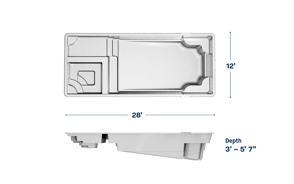 Below you will discover a number of details relating to this pool shape. Information included ranges from this shape’s exact measurements to features that are included and available options to consider. If it’s not exactly what you were looking for please make sure to check out our other Similar Models lower in the page.