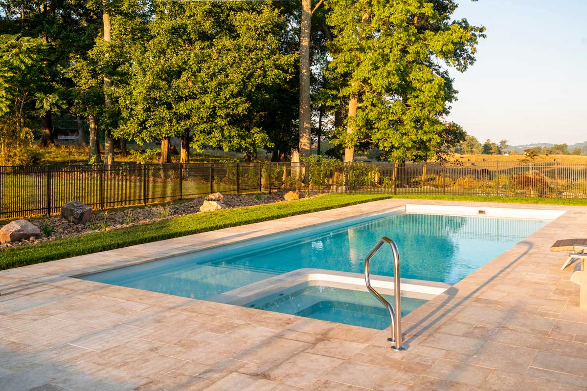 Enjoy your Latham Fiberglass Pool and Spa long into the night with added lighting options. Choose from a variety of styles and brands to create your perfect late night getaway.