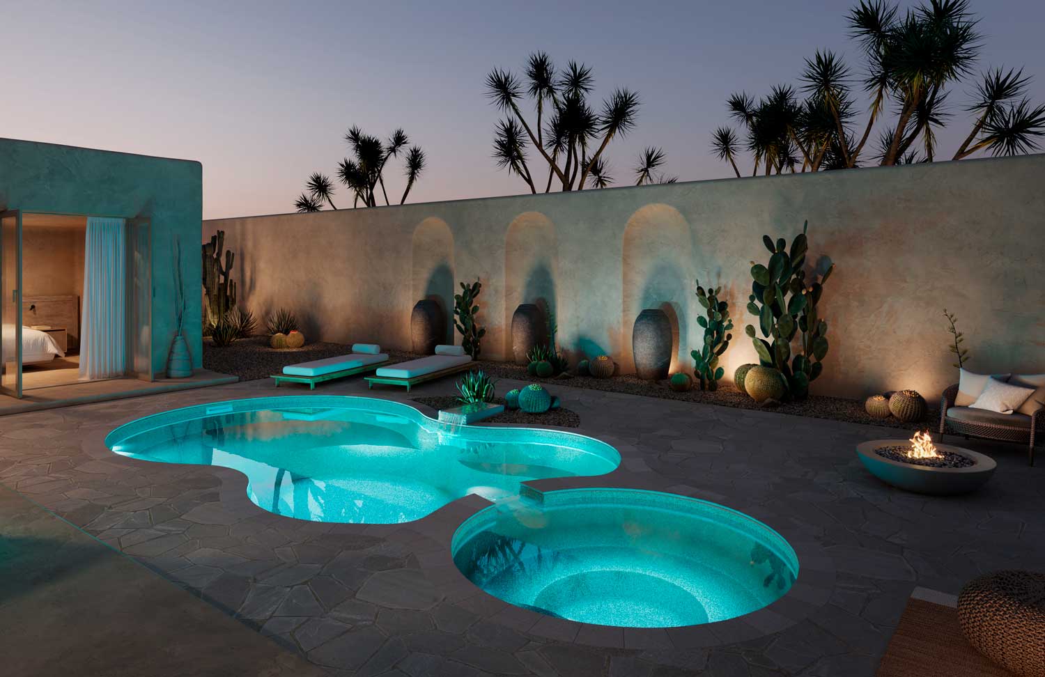 Enjoy your Latham Fiberglass Pool and Spa long into the night with added lighting options. Choose from a variety of styles and brands to create your perfect late night getaway.