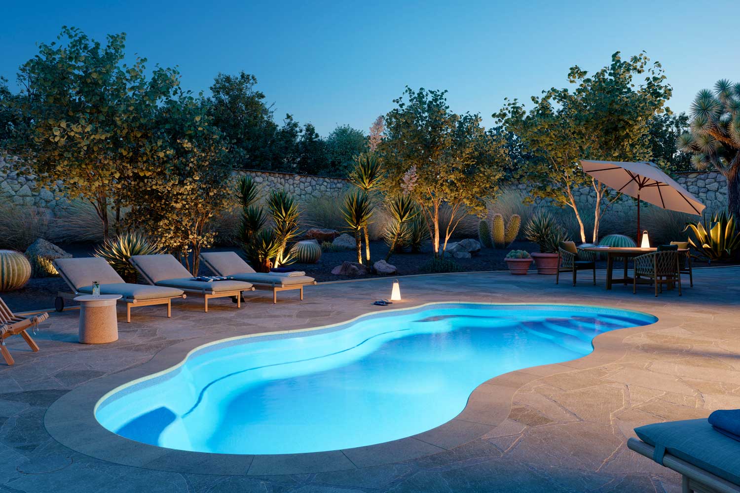 Enjoy your Latham Fiberglass Pool and Spa long into the night with added lighting options. Choose from a variety of styles and brands to create your perfect late night getaway.