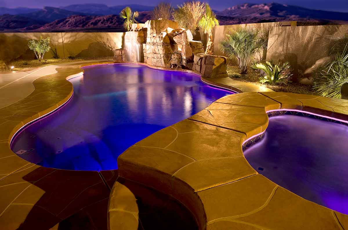 Enjoy your Latham Fiberglass Pool and Spa long into the night with added lighting options. Choose from a variety of styles and brands to create your perfect late night getaway.