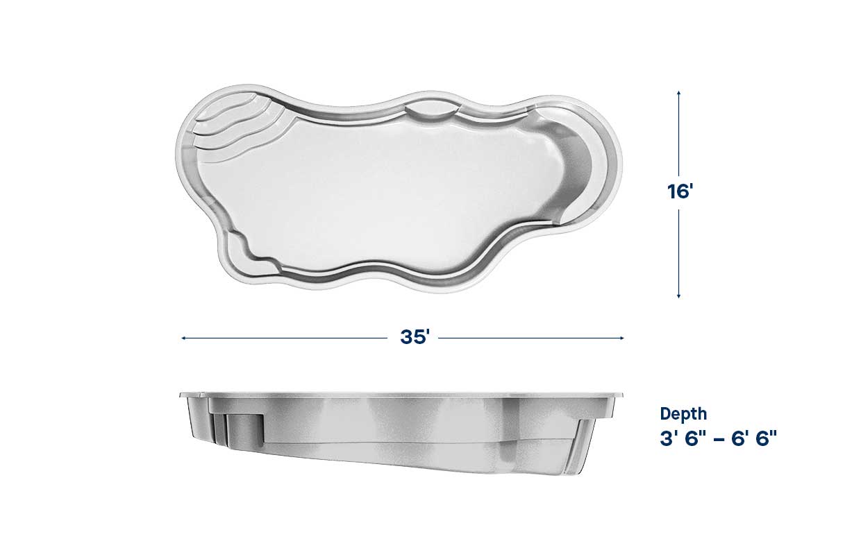 Below you will discover a number of details relating to this pool shape. Information included ranges from this shape’s exact measurements to features that are included and available options to consider. If it’s not exactly what you were looking for please make sure to check out our other Similar Models lower in the page.