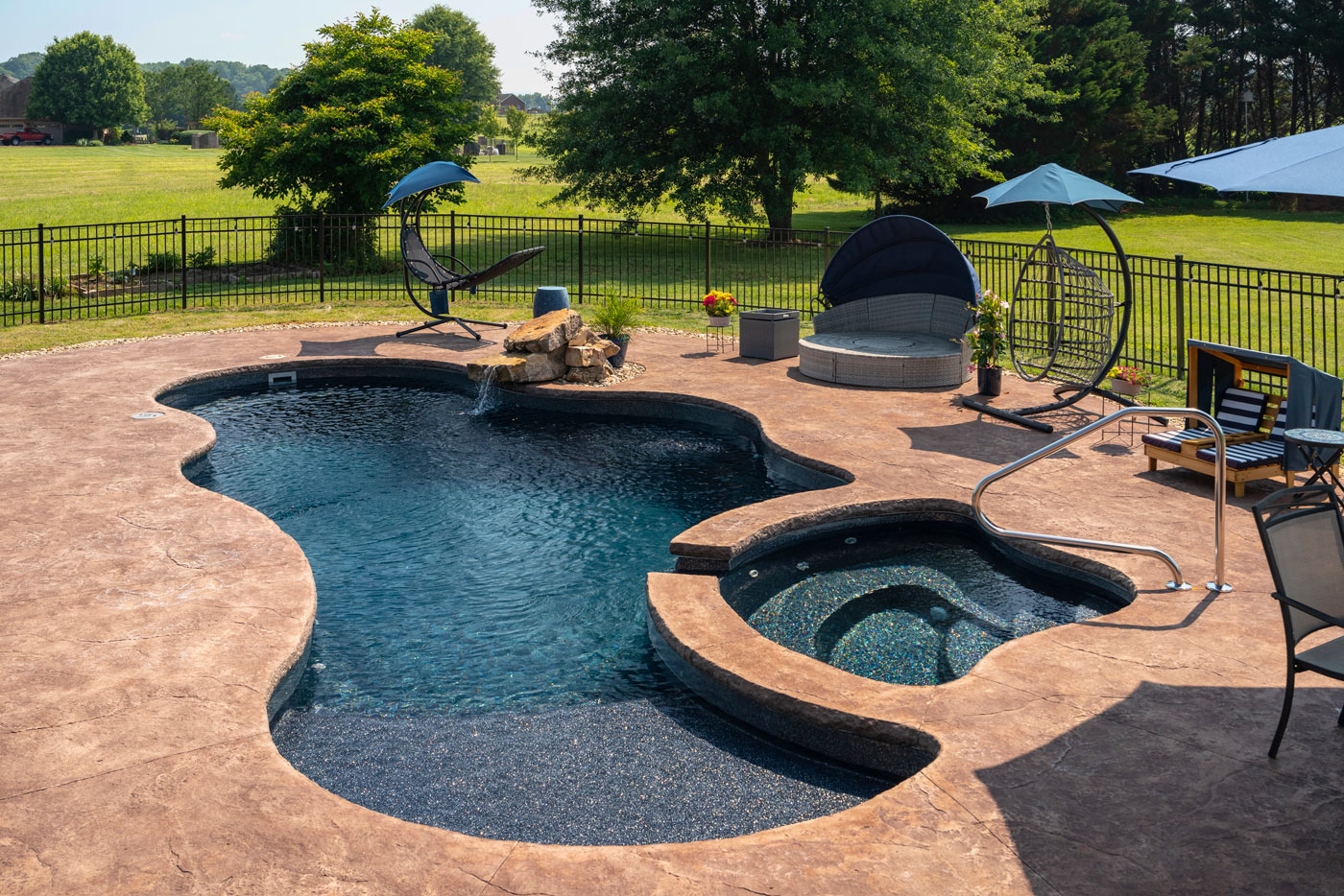 Tanning ledges offer luxury living at its finest. If you are looking to bring home that resort vacation, tanning ledges are a great way to recreate that experience in your backyard. Tanning ledges can vary in depth, our standard for a tanning ledge is 12” from the top of the pool which equates to about 6”-8” of water depth. Outfit the tanning ledge with ledge loungers, bubblers and enjoy your favorite beverage.