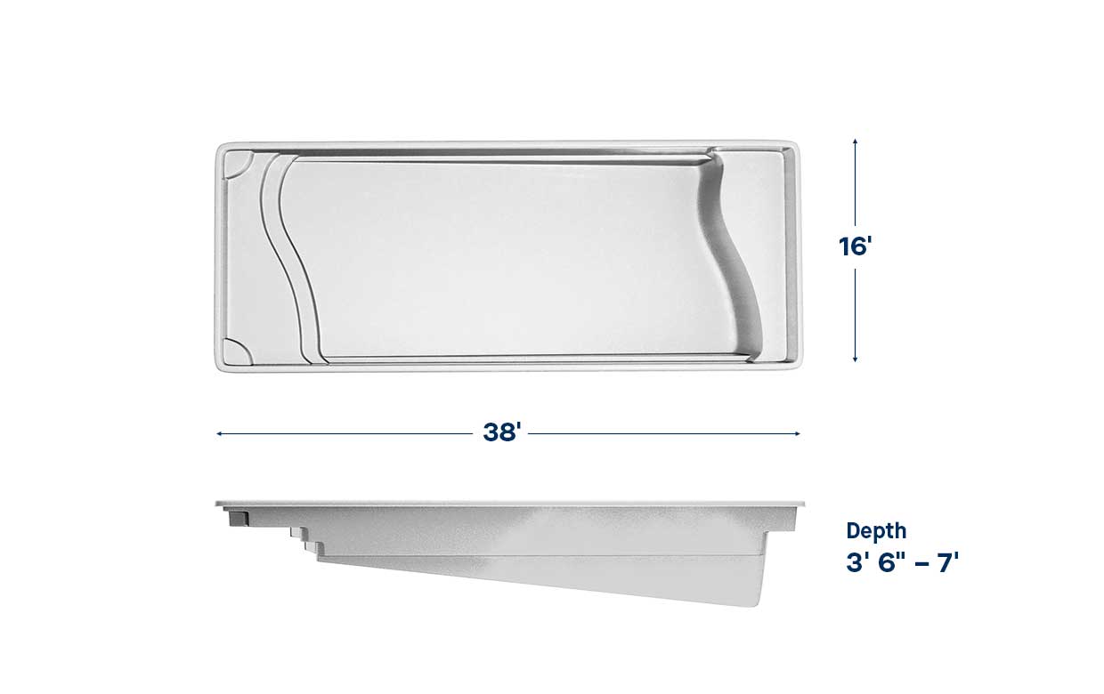 When you are looking for a full body submersion or a great place for youngsters to splash and play, a fiberglass pool design with a nice wading area might be a feature you want to consider. Wading areas are similar to tanning ledges but offer more water depth. Water depth of a wading area can vary and is approximately 14”-18” of water.