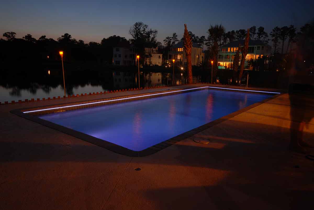 Enjoy your Latham Fiberglass Pool and Spa long into the night with added lighting options. Choose from a variety of styles and brands to create your perfect late night getaway.