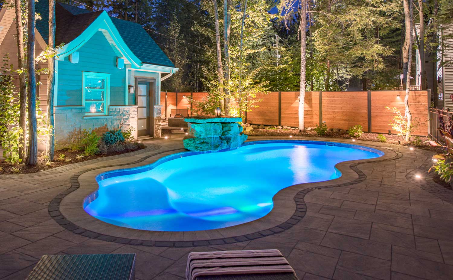 Enjoy your Latham Fiberglass Pool and Spa long into the night with added lighting options. Choose from a variety of styles and brands to create your perfect late night getaway.