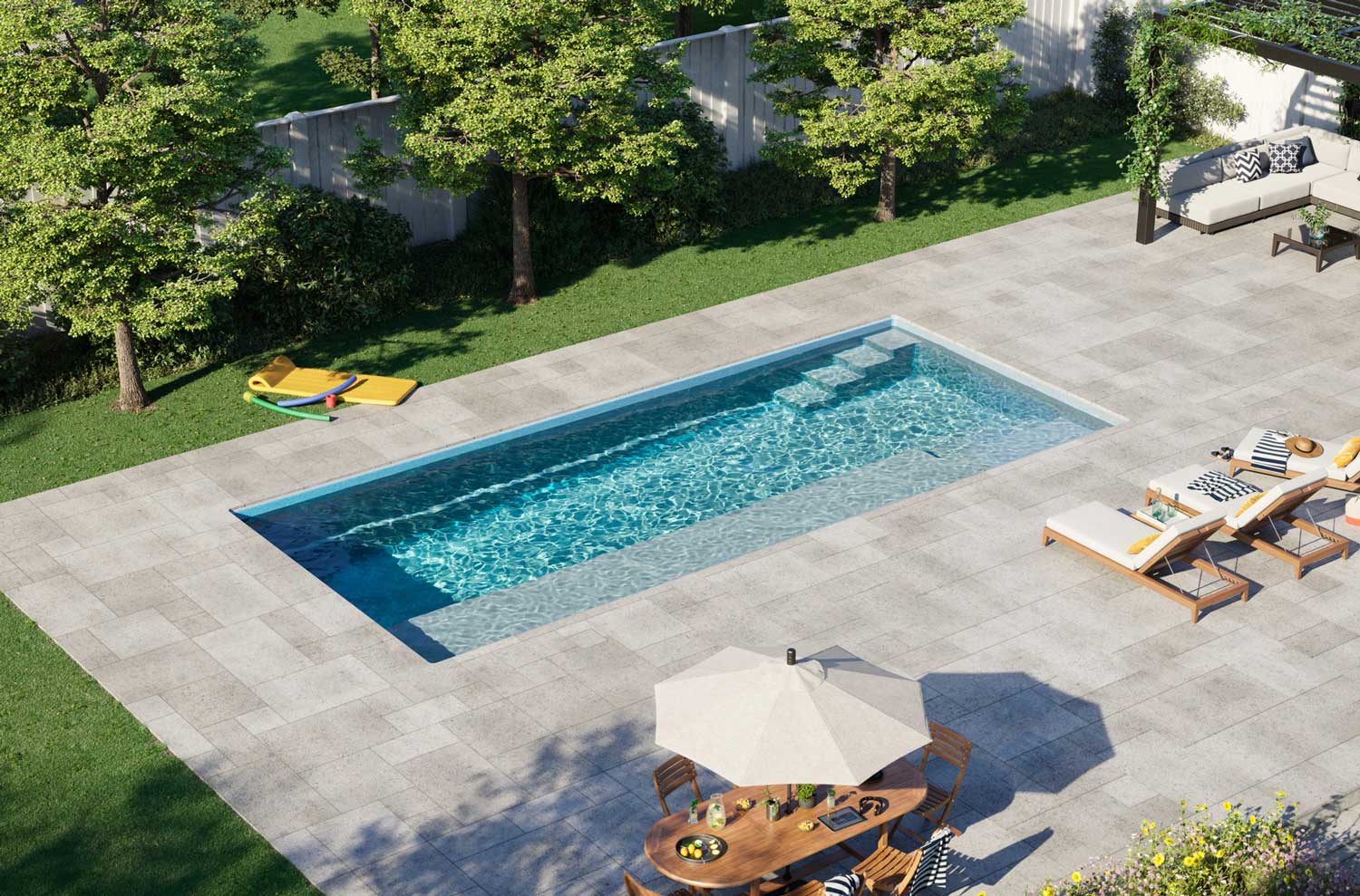 The Providence 14 blends contemporary design with thoughtful versatility. Featuring multiple entry and exit points and full-length tanning ledge, swim-up seating, it offers effortless access, comfort, and style for every kind of pool day.
