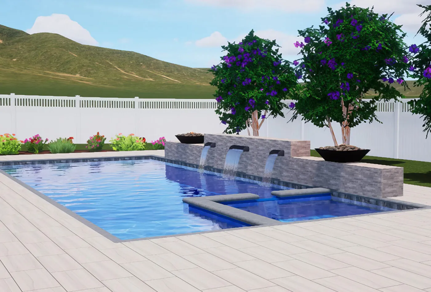 With its built-in spa, ample swim space, and elegant rectangular design, the Castaway pool delivers both fun and function for your backyard. Contact us today to connect with an authorized dealer and start planning your installation.